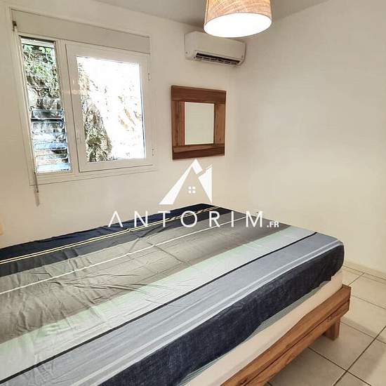 Déjà loué par Antorim.fr : Location meublée : dans le quartier résidentiel de Clairière, dans une petite résidence de standing de 3 étages, sécurisée par portail électrique et interphone, ce bel appartement de 74m², dont 21m² de terrasse, est composé comme suit : - 1 grand séjour donnant sur une grande terrasse, et un jardin privatif - 1 cuisine aménagée et entièrement équipée ouverte sur la terrasse - 1 buanderie - 2 chambres (climatisées) avec placards - 1 salle d'eau - 1 W.C. indépendant Pour vos véhicules, ce bien est vendu avec - 1 empl...