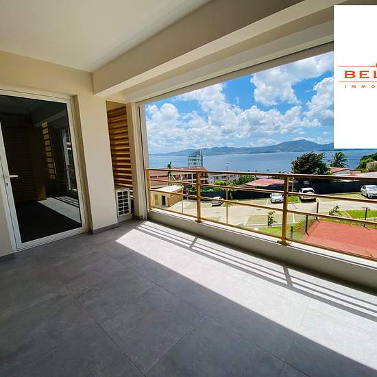 FORT DE FRANCE : Situé dans une résidence neuve, superbe appartement de type F3 avec vue mer. Composé d'un salon avec cuisine ouverte équipée et aménagée, deux chambres climatisées, salle d'eau, wc indépendant, buanderie. Belle terrasse à vivre. Un garage en sous sol et une place de parking extérieure. Résidence sécurisée. Honoraires de 962 € TTC à la charge du locataire comprenant 222 € TTC pour l'état des lieux. Loyer de base 1250 €/mois. Provision sur charges 70 €/mois, régularisation annuelle. Dépôt de garantie 1 250 €. Non soumis au DPE...