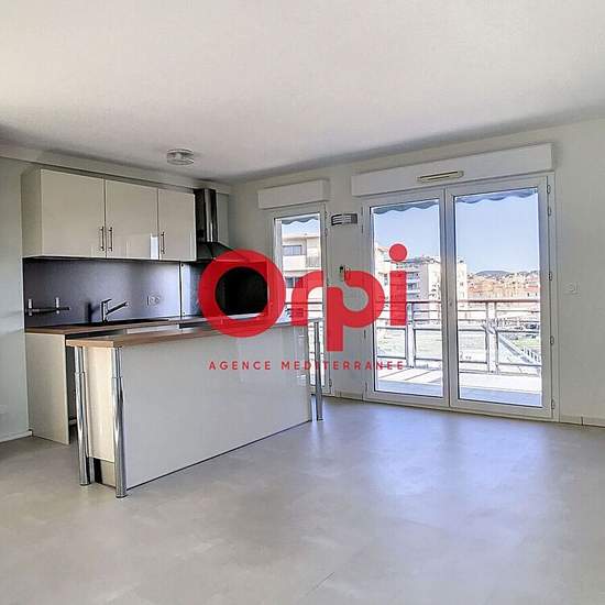 APPARTEMENT T3 - TERRASE - GARAGE - CLIMATISATION. APPARTEMENT 3 PIÈCES AVEC TERRASSE L'Agence Méditerranée vous présente cet appartement de 3 pièces. Il est organisé comme suit : un salon/séjour de 21 m², avec sol en PVC, deux chambres avec placards, une cuisine ouverte aménagée et équipée, une salle d'eau et un WC indépendant. Pour se détendre, cet appartement bénéficie aussi d'une terrasse avec une belle exposition. Il se situe au 4ème étage d'un immeuble de standing, équipé d'un ascenseur. Tout est prévu pour votre véhicule : parmi les e...