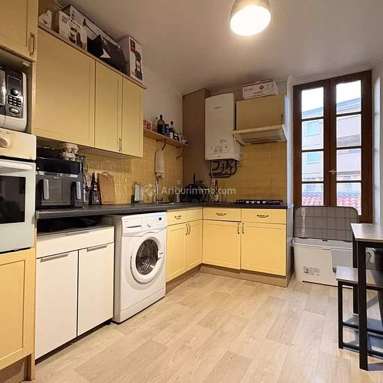 Centre-ville, grand T2 bis en duplex d'environ 66m² au sol, au 1er étage d'un petit collectif. 1er niveau : Séjour d'environ 20m², grande cuisine semi-ouverte aménagée et équipée (plaque gaz 4 feux, four, hotte), toilettes indépendantes. 2eme niveau : couloir avec espace dressing, salle de bain, bureau, chambre. Chauffage au gaz de ville, double vitrage. Disponible mi-avril