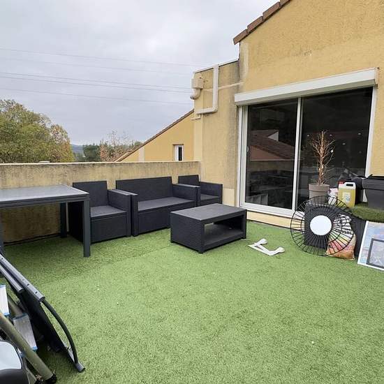 Gardanne un appartement de type 3 d'une surface de 64,46m2. Il se compose au rez-de-chaussée une cuisine aménagée (équipée d'un four, une plaque de cuisson une hotte aspirante et un lave-vaisselle encastré), un séjour donnant sur la terrasse, une chambre avec penderie, un dégagement, une salle de bains, et un WC indépendant . À l'étage une chambre et une mezzanine qui peut être aménager en chambre, bureau ou dressing. Cet appartement comprend également la jouissance exclusive et particulière d'une terrasse privative au rez-de-chaussée d'envi...