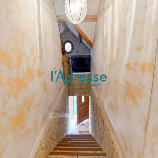 Bel appartement situé dans une construction divisée en deux logements . Environnement privilégié ! Accès indépendant ouvrant sur une entrée avec rangements, escalier menant au logement : Dégagement, grand séjour avec poêle à granulés ouvert sur une cuisine aménagée équipée, deux chambres, salle de bains et wc. En sous sol : Garage (porte motorisée), buanderie et pièce de rangements. Jouissance d'un petit extérieur