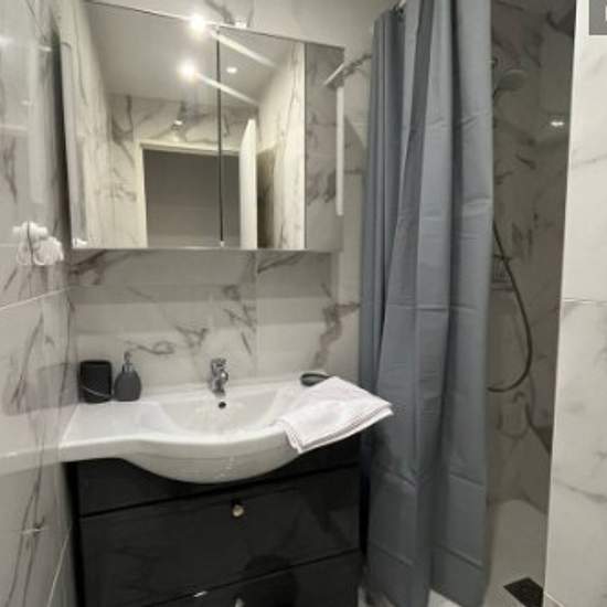 Détendez-vous dans ce logement calme et élégant. Ce superbe T3 contemporain est idéalement situé, profitant de ce lien de proximité avec l'hyper-centre de Grenoble accessible en quelques minutes. Il est idéalement situé en étant aux pieds des transports en commun et est idéal pour 4 personnes. L'appartement s'ouvre sur une salle de séjour spacieuse avec un coin salon qui dispose de d'un canapé face à la télévision. La cuisine est équipée de nombreux appareils électroménagers (plaque, four, réfrigérateur, congélateur, ...). Des couverts et ba...