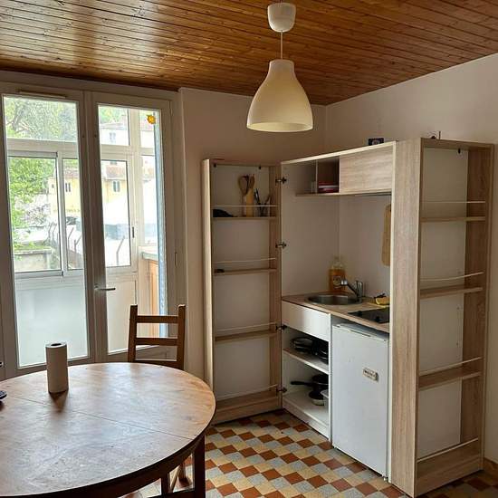 Appartement de 51 m² à louer sur grenoble appartement au centre de grenoble appartement de 51 m². Il se situe au centre de grenoble. 1er étage (sans ascenseur) donnant sur l' esplanade avec vue sur le vercors. Il se compose de : une entrée; une cuisine; une sdb; 2 pièces et 1 cave la cuisine est équipée avec 2 plaques vitro-céramique; hotte; frigo et une table avec 2 chaises. Chauffage électrique (radiateurs « à accumulation ») machine lave-linge séchant neuve canapé « clic-clac » neuf. Energie f ges d (avant travaux) l'isolation a été renfo...