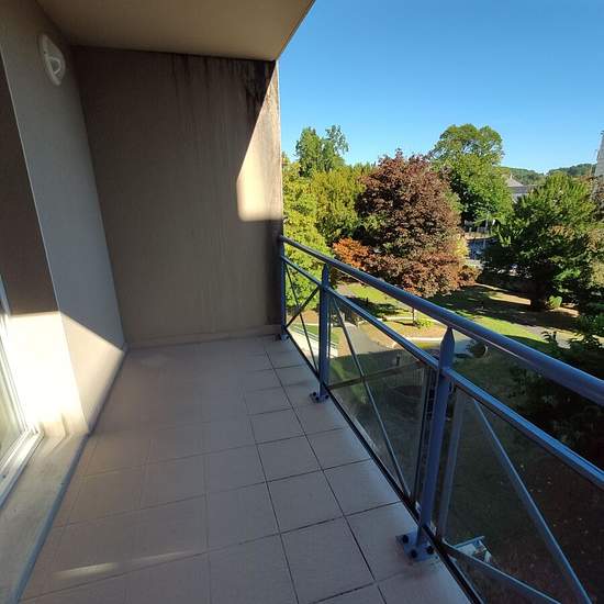GUERET centre, F3 en très bon état état avec une vue magnifique sur le parc. Très bien exposé. Cuisine semi-aménagée + hotte Volets roulants électriques, ascenseur. Grand balcon. Cave, garage. Disponible le 1er mars.