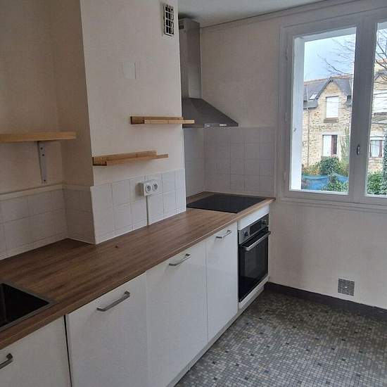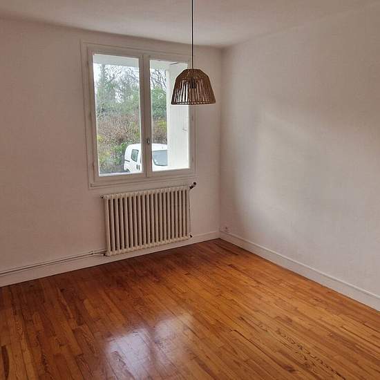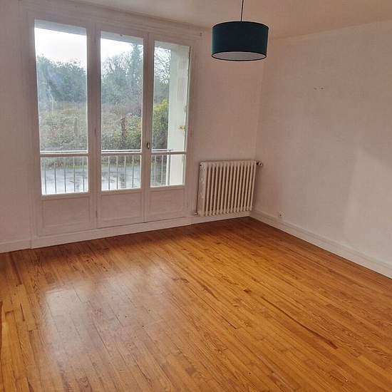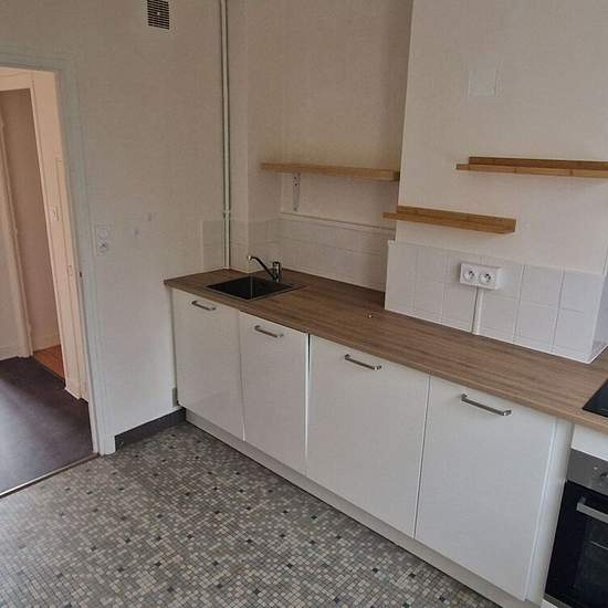 Appartement à louer de type 3 - LOCATION NUE. Un appartement de type 3 composé de : - séjour, cuisine aménagée et équipée (four, lave-vaisselle, plaques induction), salle d'eau avec loggia, WC, deux chambres. Une cave. Parking libre.