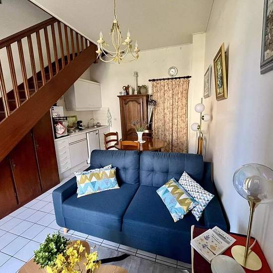 Dans les jardins du Grand Hôtel, bel appartement d'environ 45 m2, comprenant une entrée par une terrasse privative, donnant sur une pièce de vie avec un coin cuisine aménagée et équipée, un accès à un garage privatif, à l'étage un palier avec deux lits simples, wc, une salle de bain et une chambre avec 1 lit double.