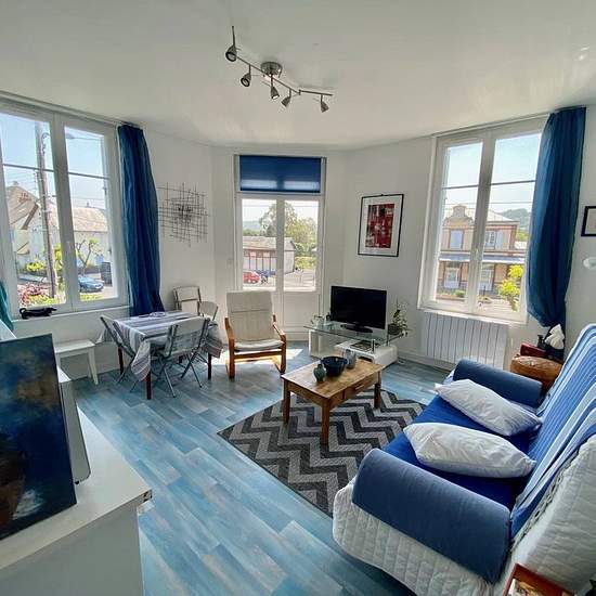 Cet appartement lumineux d'environ 43 m2, situé à 2 minutes à pieds de la plage et des commerces se compose d'une entrée distribuant une belle pièce de vie avec accès balcon (canapé convertible), une cuisine ouverte sur l'ensemble, une chambre (lit 160), un bureau, une salle de bain et wc séparé. Idéal pour 2 ou 4 personnes. A réserver rapidement pour vos vacances à Houlgate !