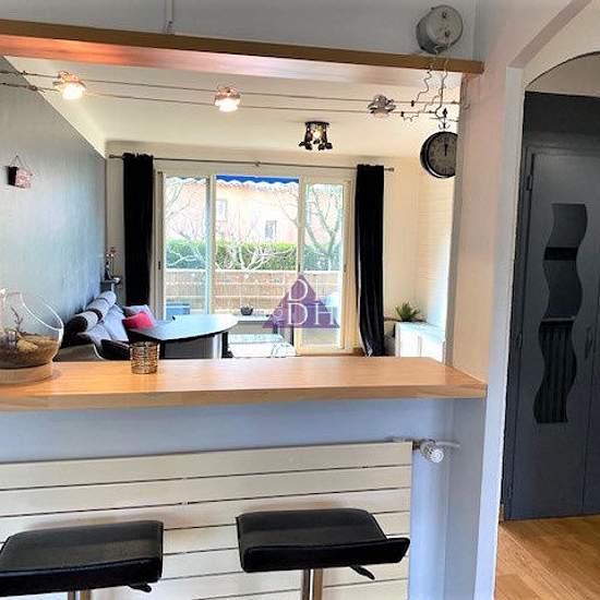 Appartement meublé situé à Hyeres secteur Ouest (rue Eugénie). Résidence sécurisée et fermée (au calme) avec de nombreuses places de stationnement ( + possibilité de parking privé). 1er étage sans ascenseur, entrée, séjour, salon, cuisine entièrement équipée, 2 chambres avec placards, 1 salle de douche, 1 wc, 1 balcon exposé sud sans vis à vis et au calme, 1 cave, 1 local véno.(fibre installée) proche des écoles et commerces. Loyer : 1100EUR / mois charges comprises (chauffage compris dans les charges) Eaux et électricité ' individuel' Dispo...