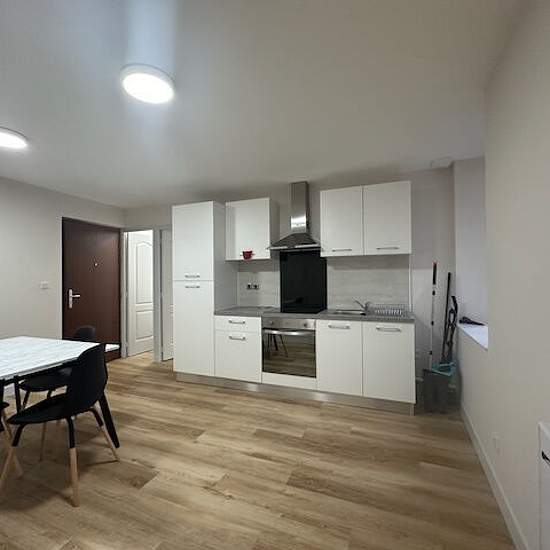 Appartement type 3 nombre de pièces : 3 surface habitable : 53 m², comprenant : entrée, wc, salle de bains, cuisine aménagée, équipée ouverte sur séjour, deux chambres. Double vitrage, chauffage électrique.