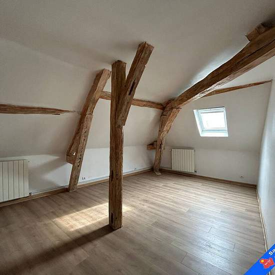 Appartement duplex au cœur du centre historique, offrant de beaux volumes et beaucoup de charme.Au 1er niveau: entrée dans une cuisine semi-équipée ouverte sur la salle à manger puis le séjour, créant un espace de vie convivial et lumineux. Vous trouverez également une petite salle d’eau avec WC ainsi qu’un coin buanderie.Le 2? niveau mansardé se compose d’un palier, de deux chambres, et d’une salle d’eau avec WC.Disponible 13 04 2026 Loyer 570€ + 16€50 charges (contrat entretien chaudière)