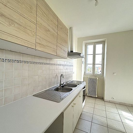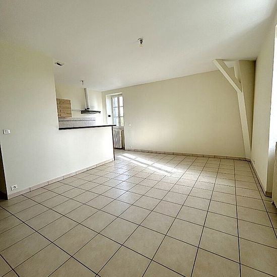 Dans un site historique, au 2ème étage : appartement comprenant une entrée, une cuisine aménagée ouverte sur le séjour, 2 chambres dont 1 avec un boudoir, une salle de bains et WC séparés. Chauffage central par géothermie. 1 place de parking sécurisée Parc, potager et verger à disposition des locataires. La provision sur charges comprend : l'entretien des communs et la TEOM.