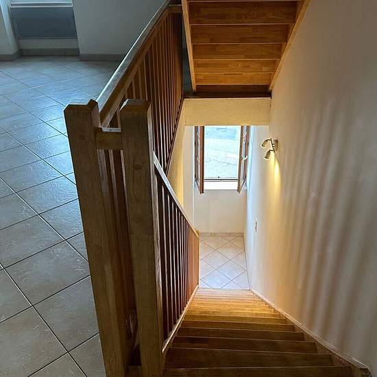 Appartement TRIPLEX Joyeuse 4 pièce(s) 87.06 m2. Situé en plein cœur du village, ce beau triplex TYPE 4 offre un cadre de vie agréable à proximité immédiate des commerces, écoles et transports. Le logement se compose : Au premier niveau un séjour avec coin cuisine, une chambre, une salle d'eau, un WC. Au deuxième niveau : un salon, une chambre avec terrasse, une salle d'eau et un WC. Au troisième niveau : une grande chambre mansardée. Chauffage individuel électrique et poêle à granulés. Les locataires devront souscrire personnellement aux ...