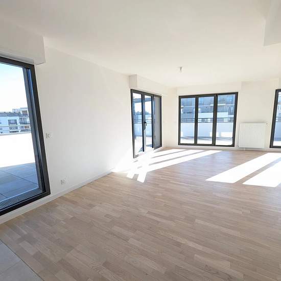 JUVISY-SUR-ORGE, Centre-ville, au 55-61 Avenue de la Cour de France, proche des transports en commun, à 15 minutes à pieds de la Gare RER C et RER D. Appartement NON meublé. Au 2ème étage d'une belle résidence neuve Kaufman&Broad loue un beau T3 de 75m2, comprenant une entrée, un séjour, une cuisine ouverte à équiper, deux chambres, une salle de bains, des WC séparés et une grande terrasse. 2 places de parking en sous-sol. Chauffage et eau inclus dans les charges.