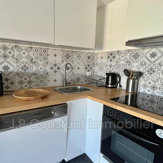 La Ciotat, BAIL MEUBLÉ 1 an. Bel appartement de type 3, situé dans le quartier de Bellevue, en rez de villa, avec une petite vue mer. Il se compose d'un séjour avec cuisine américaine aménagée, deux chambres, un coin bureau, une salle d'eau et un wc indépendant. Grande terrasse donnant sur une piscine (jouissance de la piscine en copropriété avec les autres lots et tout en respectant un cahier des charges). Loyer 1 400 ¤ 150¤ de charges comprises (eau + électricité inclus).