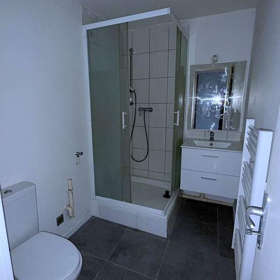 Appartement À Louer - LA FÈRE. Appartement au rez-de-chaussée dans un immeuble comprenant : Un séjour salon, une cuisine aménagée, une salle d'eau avec WC, deux chambres.