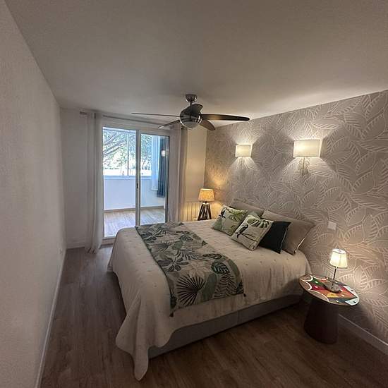 Quartier Couchant, A louer à l'année en meublé, Résidence Les Dunes d'Or, Situé au 3ième étage, avec ascenseur, découvrez ce superbe trois pièces de 73.75 m² entièrement refait à neuf. Il se compose d'une belle pièce de vie lumineuse ouvrant sur une terrasse exposée Ouest, dont une partie est vitrée pour en profiter toute l'année, de deux chambres avec accès à une loggia fermée côté Nord, idéale pour aménager un coin bureau. L'appartement bénéficie d'une cuisine aménagée et équipée, d'une salle d'eau avec wc et un wc séparé, d'un espace buan...