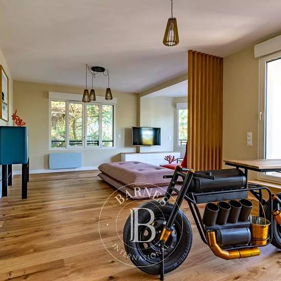 L'agence BARNES Arcachon vous présente cet appartement exceptionnel, situé dans une résidence au style architectural basque, perchée à la pointe de la Corniche du Pyla sur Mer, à quelques pas d'une charmante place du Bassin d'Arcachon. Cet appartement de 120 m² offre un salon-séjour lumineux, une cuisine américaine moderne et deux chambres, chacune dotée de sa propre salle d'eau. Vous apprécierez les deux terrasses aménagées, l'une en coin repas et l'autre en espace salon avec jacuzzi, permettant de profiter de la vue imprenable sur le Bassi...