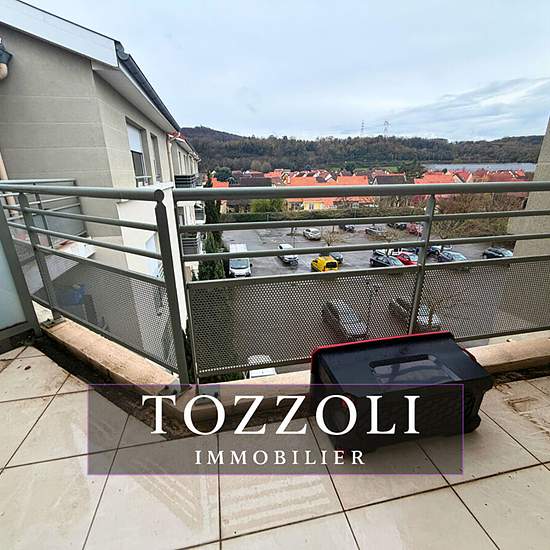 A Louer, chez TOZZOLI IMMOBILIER, Situé au coeur du centre ville de La Verpillière, au dernier étage d'un immeuble de 3 étages construit en 2009, appartement meublé de type 3 d'une surface habitable de 67.61m². La partie habitable se compose d'une entrée de 5.2m², un séjour avec cuisine US aménagée et équipée de 32.38m² donnant un accès à un premier balcon et un WC indépendant. La partie nuit dessert deux chambres donnant chacune un accès direct au second balcon, la chambre 1 de 12.07m² et la chambre 2 de 10.07m², on retrouve une salle d'eau...