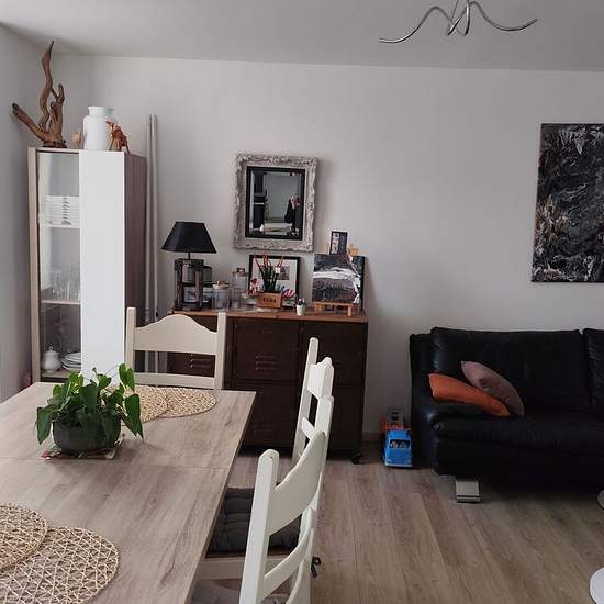 LANDIVISIAU, T3 DUPLEX de 53.88 m². Centre ville dans quartier tranquille, joli appartement en duplex au 1er étage comprenant : cuisine aménagée et équipée ouverte sur séjour, WC, Cellier, 2ème étage : 2 chambres, salle d'eau avec WC. Rez-de-chaussée : petite cour et une dépendance