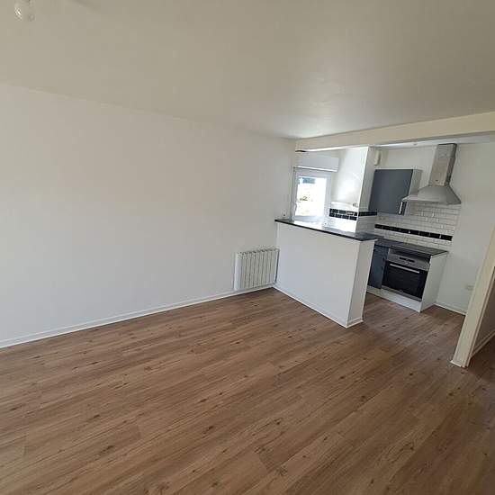 A LOUER LANGUEUX / PROCHE CENTRE Appartement Type III au rez-de-chaussée comprenant une entrée, une pièce de vie donnant sur une terrasse, une cuisine aménagée et équipée, deux chambres dont une avec placard, une salle de douche et WC. Une place de stationnement et une cave. Chauffage électrique. LUMINEUX ET CALME ! Charges comprenant les parties communes et la taxe sur les ordures ménagères.