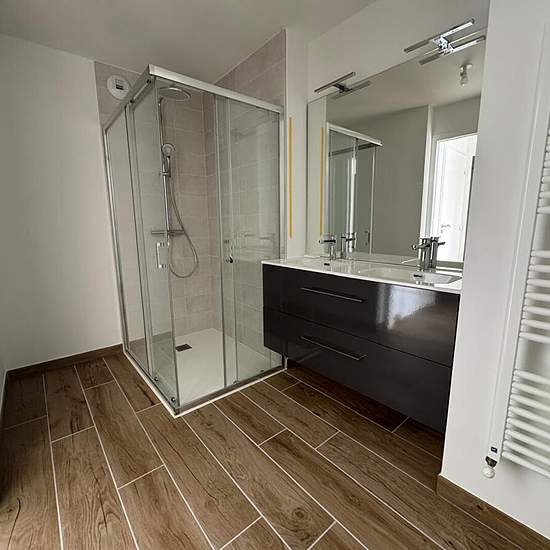A LOUER - L'ADRESSE LAVAL Venez découvrir ce superbe appartement T3 de 76 m², situé dans la nouvelle Résidence Convergences à Laval, à deux pas des commodités. Situé au 3ème étage de l'immeuble, avec ascenseur cet appartement comprend : - Entrée fonctionnelle avec placards intégrés - Spacieuse pièce de vie lumineuse avec cuisine aménagée et équipée (plaque induction, hotte, four) ? plan disponible sur demande - Grande terrasse de 24 m², idéale pour profiter des beaux jours - Deux chambres avec placards intégrés - Salle d'eau moderne avec dou...