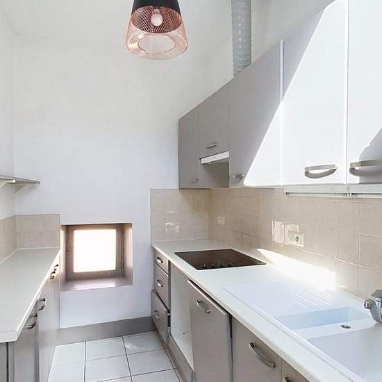 LE CANNET MAIRIE Au 3ème et dernier étage sans ascenseur d'un petit immeuble situé au cœur du centre historique du Cannet Mairie, charmant appartement 3 pièces à louer vide à l'année. Il se compose d'un séjour lumineux, d'une cuisine indépendante aménagée, d'une buanderie, de deux chambres avec placards et d'une salle d'eau avec WC. Disponible immédiatement