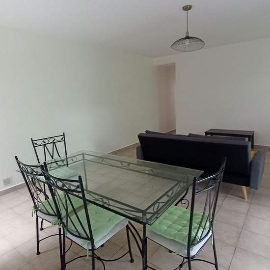 Appartement À Louer. Bas de villa F3 entièrement meublé situé dans une zone calme avec peu de vis-à-vis à la campagne et proche de toutes commodités. Il possède un séjour, une cuisine aménagée et équipée, deux chambres climatisées, une salle de bains avec WC, un WC indépendant, et une grande terrasses et une autre carrelé prés de la citerne. Une citerne d'eau tampon et une place de parking.