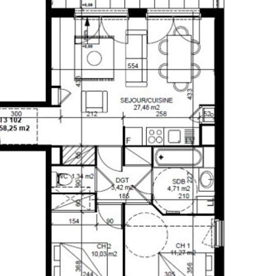 102 COURS D'Ô A SAISIR BEAU T3 DOUBLE EXPOSITION AVEC BALCON A L'INTERIEUR D'UNE RESIDENCE NEUVE DE STANDING A FAIBLE CONSOMMATION ENERGETIQUE. Il est composé d'une belle pièce de vie d'une cuisine US (meubles haut et bas, hotte, plaque de cuisson et four) donnant sur le balcon, deux chambres en sol parquet dont une avec placard, une salle de bain aménagée avec meuble sous vasque et sèche serviette. Une place de parking en sous-sol. Chauffage individuel gaz. Visiophone. Consommation d'énergie totale entre 599 EUR et 810 EUR par an (prix moye...