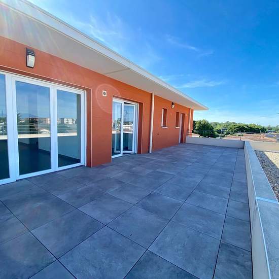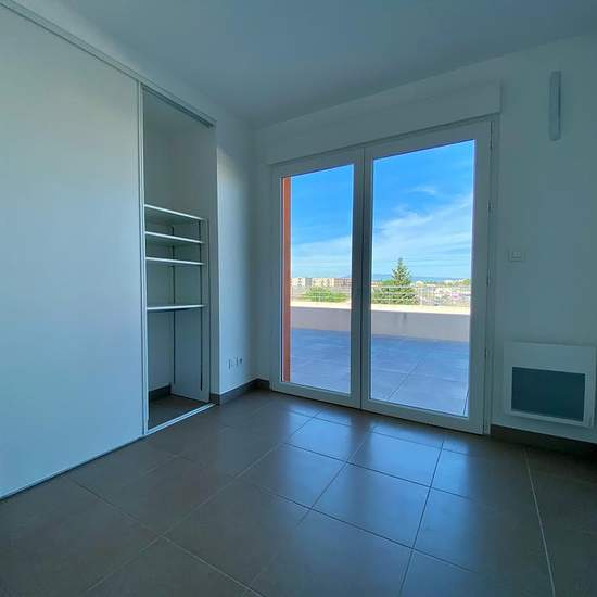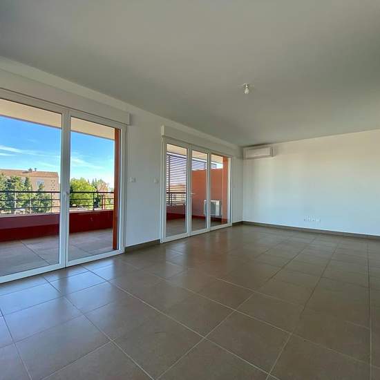 A louer sur Le Pontet, appartement type 3 climatisé de 76.18m² - Avenue Charles de Gaulle Venez découvrir ce bel appartement au 3ème et dernier étage d'une résidence récente et sécurisée avec ascenseur. L'appartement se compose d'un lumineux séjour de 39.82m² climatisé donnant sur une grande terrasse de 45.23m² exposée Sud Est et sur une seconde terrasse couverte de 15.66m² exposée Sud, vous trouverez également une cuisine équipée. L'espace nuit dispose de deux belles chambres de 10 et 11m² donnant chacune accès à la terrasse, d'une salle de...