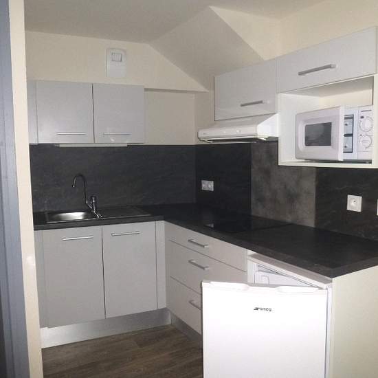 Centre ville, T2 bis au 2ème étage d'un petit immeuble sécurisé, composé d'une cuisine équipée sur séjour, d'une chambre, d'un bureau, d'une salle d'eau et d'un wc.