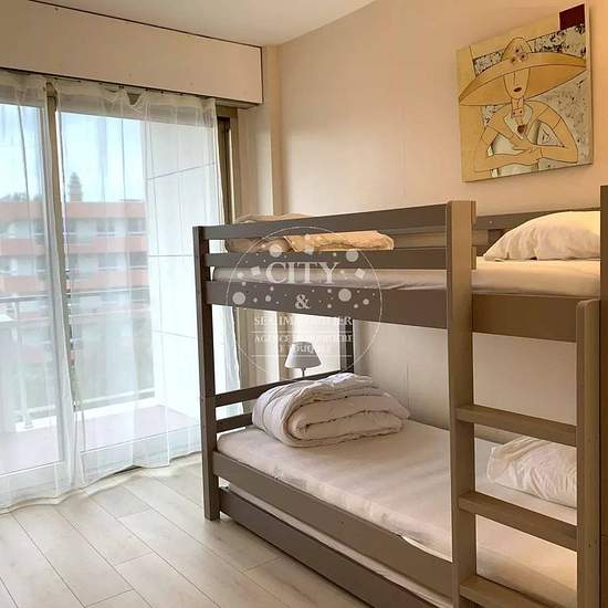 Location saisonnière Appartement traversant au 4éme étage avec ascenseur comprenant: - une entrée avec placards et dégagement desservant un wc avec lave-mains - un séjour-salon avec espace repas, canapé convertible et accès à un balcon avec vue sur le parc, - une cuisine équipée séparée Un second dégagement desservant : - une salle d'eau comprenant cabine de douche, meuble-vasque, lave linge et sèche linge - une première chambre avec lit double (140), dressing et balcon, - une seconde chambre avec lits simples superposés et un lit tiroir (90...