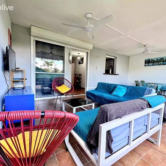 Découvrez ce charmant appartement T3 à louer meublé au Trois-Ilets, avec une place de parking, dans une résidence sécurisée à 500m du Golf et à 3,5km de la station Balnéaire de la Pointe du Bout. L'appartement entièrement meublé offre une vie agréable sans vis-à-vis, il comprends : entrée, cuisine équipée, deux chambres climatisées, une salle d'eau avec WC, une large véranda lumineuse qui accueille les espaces salon et salle à manger. Proche des navettes maritimes , de toutes commodités, commerces, écoles, bus, cet appartement offre un accès...