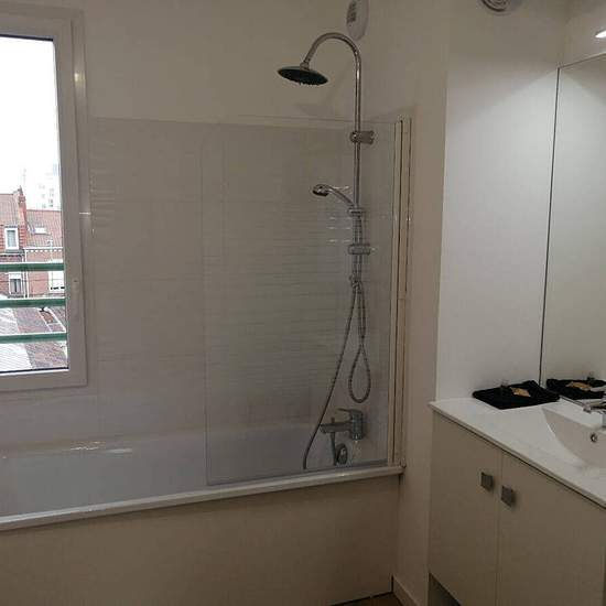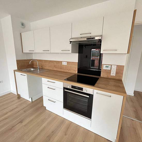 Référence 2402 - Contacter IMMO DE FRANCE, Marie PLATTEEURO au O6.73.74.42.57 Lille, rue Gustave Nadaud , A proximité du CHR, LILLENIUM et des transports Très bel appartement neuf de type 3 de 68m² - Il vous propose : un hall d'entrée , un grand séjour lumineux de 25.6m² avec cuisine ouverte équipée (meubles de rangement, four, plaques, hotte, arrivée d'eau pour lave-vaisselle) donnant sur un balcon, deux chambres, une salle de bains (baignoire, meuble vasque, arrivée d'eau machine à laver) , WC séparés. Une place de parking en rez-de-chauss...