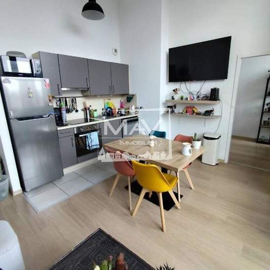 À LOUER - LILLE - Rue Sentier du curé, à 550 mètres de la station de métro Marbrerie, dans une ancienne usine entièrement réhabilité, appartement de type 2 composé d'une entrée, un séjour avec balcon, une cuisine aménagée et équipée (plaques vitrocéramique, hotte), une chambre, une salle de bains avec WC. Loyer : 910€ dont 200€ charges (Eau froide et chaude, chauffage et entretien des parties communes) - Dépôt de garantie : 710€ - Honoraires charge locataire : 745,55€ dont 172,05€ état des lieux. Disponible au 1er mars.