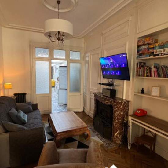 À louer, magnifique appartement meublé de 80 m² en rez-de-chaussée, idéalement situé rue d'Artois à Lille. Les atouts du logement • Grande pièce de vie lumineuse avec verrière et accès direct à la terrasse • Cheminée à bois fonctionnelle pour des soirées chaleureuses • 2 chambres spacieuses, chacune équipée d'un lit double King size et d'espaces de rangement dont une avec bidet et lavabo. Linge de lit, couettes, oreillers, serviettes de bain fournis. • Cuisine moderne et entièrement équipée : four, micro-ondes, plaques induction, lave-vaisse...