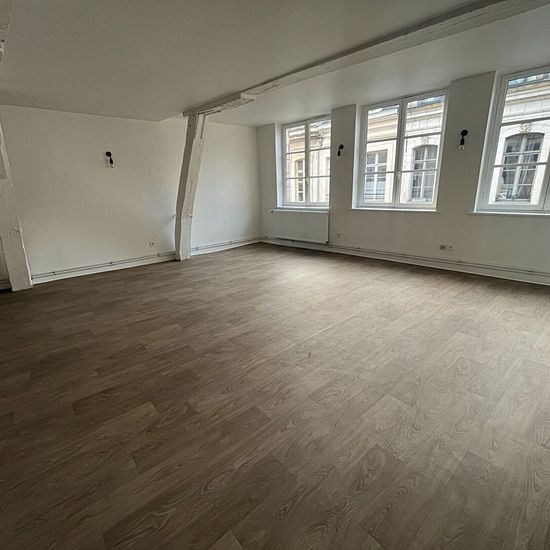 Prenez RDV ici pour visiter ce bien : A LOUER, rue Esquermoise Référence 00098-001-GLI Pour plus d'information, merci de nous contacter Retrouvez l'ensemble de nos biens sur le site internet Lille Immo ! Superbe T3 NON MEUBLE de 67,38m² situé rue Esquermoise au 2ème étage sans ascenseur. Il comprend une entrée, une pièce à vivre, une cuisine équipée (plaque, four), deux chambres (dont une avec placard), une salle de bains (meuble vasque, baignoire, rangements) et WC séparés. Le plus : une cave ! A deux pas de la grand'place, à 4 min du mét...