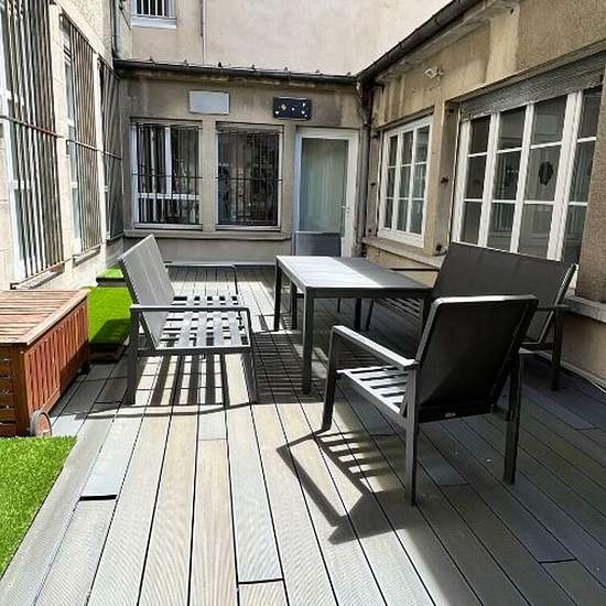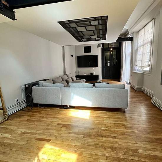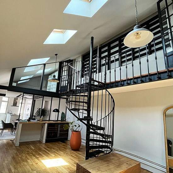 Appartement Limoges 5 pièce(s) 197 m2. LIMOGES hyper centre ville, appartement type loft avec prestations de prestige composé : D'une entrée avec nombreux rangements et un wc séparé. Une pièce de vie lumineuse de plus de 60m² avec sa cave à vin et un accès à la terrasse ensoleillée. Une cuisine ouverte entièrement équipée et aménagée (four, plaques gaz, électriques et plancha, hotte, lave vaisselle, machine à café, frigo et congélateur). Une passerelle en fer forgé desservant une bibliothèque et deux espaces bureau. Un coin nuit composé de d...