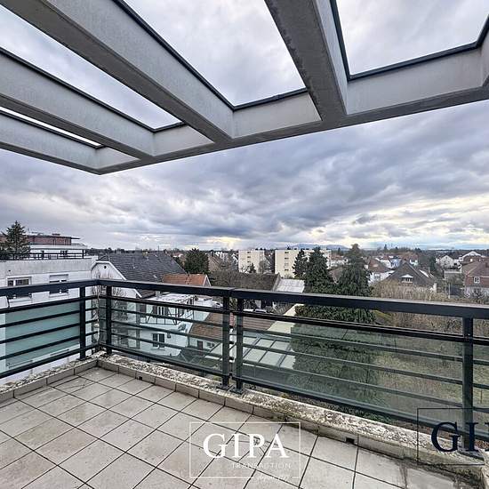 GIPA vous propose sa dernière exclusivité à la location ! Au coeur de Lingolsheim, dans un bâtiment de 2005, venez découvrir sans plus tarder ce superbe appartement T3/4 de 73m2 habitable (82m2 au sol) au 4ème et dernier étage avec ascenseur du 104 rue du Marechal Foch à Lingolsheim. L'appartement sans vis à vis dispose d'un superbe agencement : A l'étage 4/4 : Une entrée avec placards de rangement Un spacieux séjour climatisé avec cuisine ouverte équipée (four, plaque, hotte, lave vaisselle) et terrasse avec vue dégagée Un couloir menant à ...