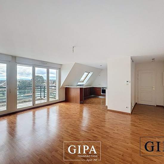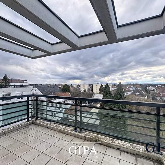 T3/4 dernier étage. GIPA vous propose sa dernière exclusivité à la location ! Au coeur de Lingolsheim, dans un bâtiment de 2005, venez découvrir sans plus tarder ce superbe appartement T3/4 de 73m2 habitable (82m2 au sol) au 4ème et dernier étage avec ascenseur du 104 rue du Marechal Foch à Lingolsheim. L'appartement sans vis à vis dispose d'un superbe agencement : A l'étage 4/4 : Une entrée avec placards de rangement Un spacieux séjour climatisé avec cuisine ouverte équipée (four, plaque, hotte, lave vaisselle) et terrasse avec vue dégag...