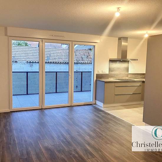 À LINGOLSHEIM, dans une petite copropriété récente de seulement 10 logements, venez découvrir cet appartement 3-4 pièces de 75.64 m² situé en rez-de-chaussée surélevé, proche du tram et se composant comme suit : Une entrée avec dégagement et placard, une cuisine ouverte aménagée et équipée (four, hotte, plaque de cuisson, micro-onde et lave-vaisselle) un salon séjour donnant sur un grand balcon, deux chambres dont 1 avec un dressing, une salle d'eau et un WC séparé avec lave-mains Un balcon ainsi qu'une place de stationnement complète ce bie...