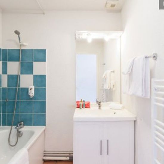 Appartement en duplex de 65m² au sein de la résidence Garden & City Lyon Lissieu, salon avec canapé convertible, coin cuisine équipée avec réfrigérateur, plaques de cuisson, lave-vaisselle, micro-ondes et cafetière, salle de bain avec baignoire , 2 toilettes séparés, 1 chambre avec grand lit, 1 chambre avec 2 lits simples séparés, terrasse au rez de chaussée. Plusieurs placards muraux dans le logement. Tarif non valable en juillet et en août
