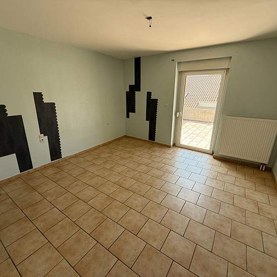 Appartement F3 à LIXING LES SAINT AVOLD. A louer, à 15mn de Saint Avold, à l'étage d'une maison, appartement de type F3 d'une surface d environ 91m2. Il se compose : - D 'une cuisine ouverte sur le salon avec un balcon sur l'avant, - un dégagement, - une salle de bains, - un wc séparé , - 2 chambres dont une avec terrasse Chauffage pompe a chaleur Provisions sur charges : 80 € (chaufface et electricité des communs) DPE : D GES : B Nous contacter au 95