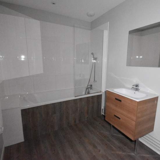 T3 de 80 m², en très bon état, grand balcon, 3ème étage, dans petite copropriété calme. Composé de: hall d'entrée, salle de bains avec WC, cuisine équipée ouverte sur séjour, chaufferie/buanderie, balcon, bureau, 2 chambres. Double vitrage PVC, électricité récente, chauffage individuel au gaz de ville, cave. Loyer net : 630 euros. Charges de 65 euros / mois comprenant: eau, électricité des communs, entretien des communs, sorties poubelles, TOM. Honoraires de 580 euros TTC (340 euros pour visite, montage dossier, bail et 240 euros pour état d...