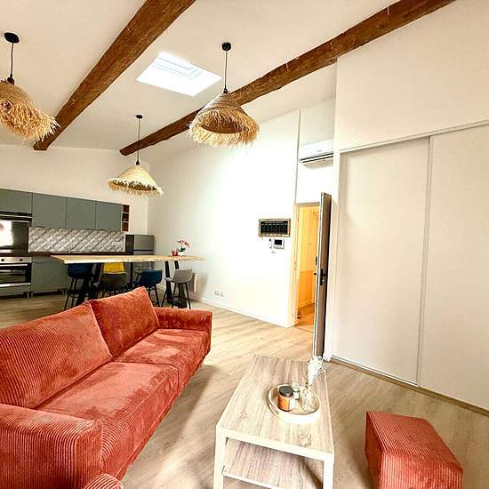 LOUPIAN CENTRE Clément de l'agence l'Adresse Gaia Immobilier Mèze vous propose la location de ce bel appartement T3 meublé de 57m² entièrement rénové avec des matériaux de qualité. Il offre un cadre de vie raffiné, lumineux et calme. Il se compose de : Une vaste pièce de vie avec belle hauteur sous plafond, salon et cuisine aménagée et entièrement équipée. Deux chambres avec dressings. Une salle d'eau contemporaine avec douche à l'italienne et WC. Atouts majeurs : -Belles prestations et finitions soignées. -Immeuble intimiste et parfaitement...