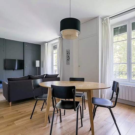 Appartement entièrement rénové situé en presqu'île Lyonnaise entre Perrache et Confluence. Dans un quartier dynamique, l'appartement donne sur un parc intérieur qui offre le calme. L'appartement dispose de deux chambres avec lit double en 160x200 peuvent accueillir jusqu'à 4 personnes aisément. Le logement est composé de : - 2 chambres avec lit double - une cuisine équipée (four, lave vaisselle, frigo, ustensiles...) - d'un salon / salle à manger ouvert lumineux - d'une salle de bain avec douche et machine à laver. Ce superbe appartement à l...