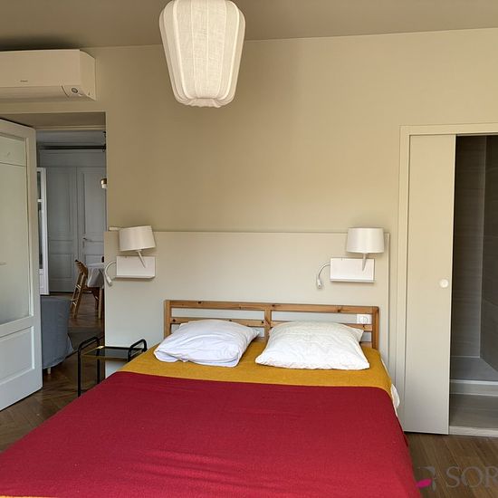 Lyon 3ème, avenue de Saxe, proche cours Lafayette. Réservé exclusivement bail logement de fonction ou résidence secondaire. Dans un immeuble 1900 bien entretenu, en dernier étage, vous serez séduit par cet appartement meublé alliant charme de l'ancien au contemporain, entièrement rénové et climatisé. Il est composé d'une entrée qui dessert une cuisine contemporaine équipée ouverte sur un séjour avec double porte donnant accès au balcon filant. Deux chambres avec chacune une salle d'eau contemporaine. Nombreux rangements, espace buanderie. Lo...
