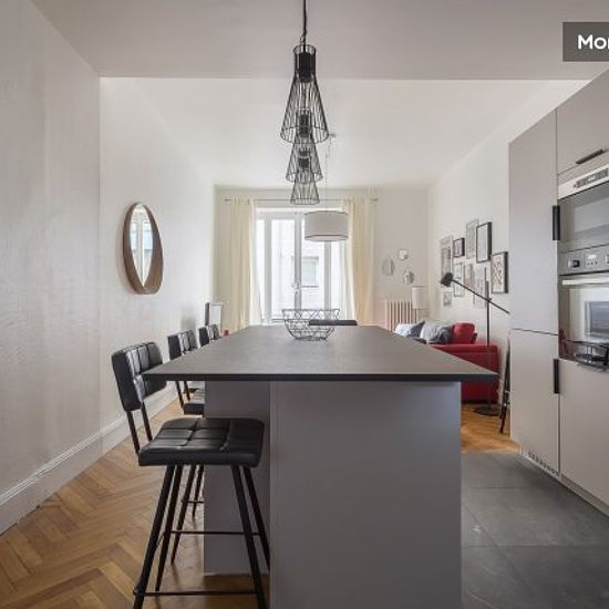 Discover this sublime and very bright apartment, designed with quality materials and careful decoration, which can accommodate 6 people (ideal for 4 travelers with its two bedrooms for medium to long rentals). Fully functional, the apartment has two bedrooms with double beds and a sofa bed in the living room. The spacious and friendly kitchen is fully equipped, open to the living room, with a central island for optimal comfort. The nicely decorated living room is bright and airy. The apartment has a functional bathroom and a separate toilet....