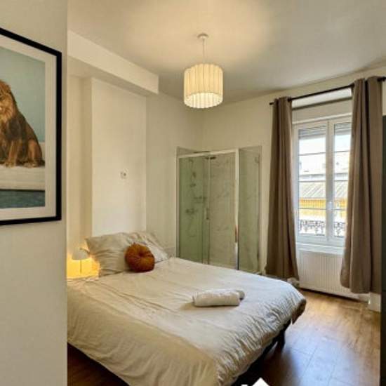 T3 de 61m² idéal pour 6. Trois chambres + séjour avec couchage, cuisine équipée, salle de bain moderne, wifi rapide, TV, linge fourni. Situé dans un quartier central de Lyon, pratique, proche transports, commerces et restaurants. Parfait pour une mission pro ou un séjour prolongé en groupe à Lyon. Updated on 11/01/2026 Mise à jour le 11/01/2026