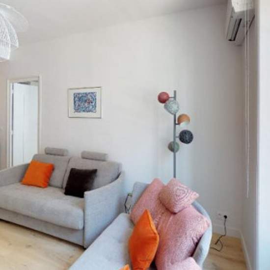 Nous vous proposons un appartement lumineux et meublé de 60 m2. Un très bel appartement avec 2 chambres et 2 salles de bains. Air conditionné dans tout l'appartement Classé 3 étoiles par le Ministère du Tourisme Le séjour : Canapé 2 places, canapé-lit (200*140), fauteuil, table basse, table et 4 chaises. Cuisine ouverte, aménagée et équipée : Chambre 1 (12.70 m²) : Lit double (160*200), tables de chevet, armoire murale, fauteuil Salle de bain (attenante à la chambre) : Baignoire, meuble sous vasque, rangements, VMC, sèche-serviettes, sèche-c...